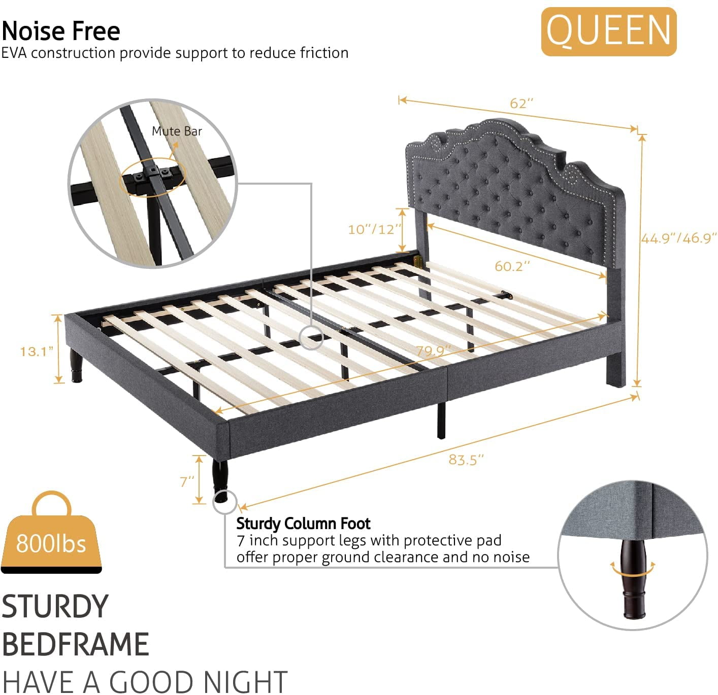 Sha Cerlin Queen Size Platform Bed Frame With Fabric Upholstered And Diamond Button Tufted Adjustable Headboard Dark Grey Walmart Com